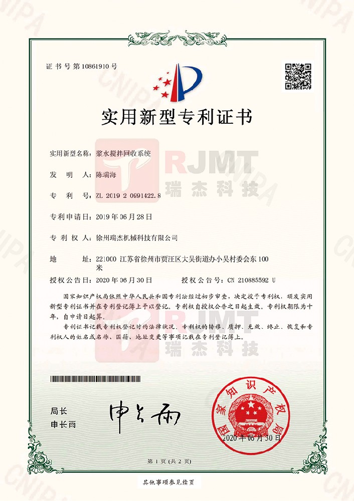 • 国家专利证书